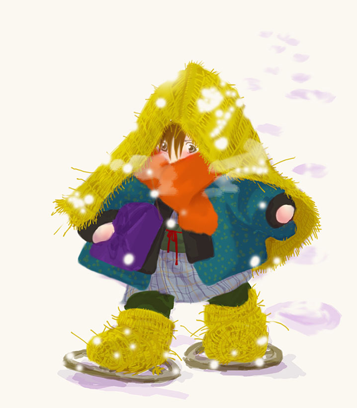 りんごほっぺの雪ん子左近くん。転ばないように気をつけて!